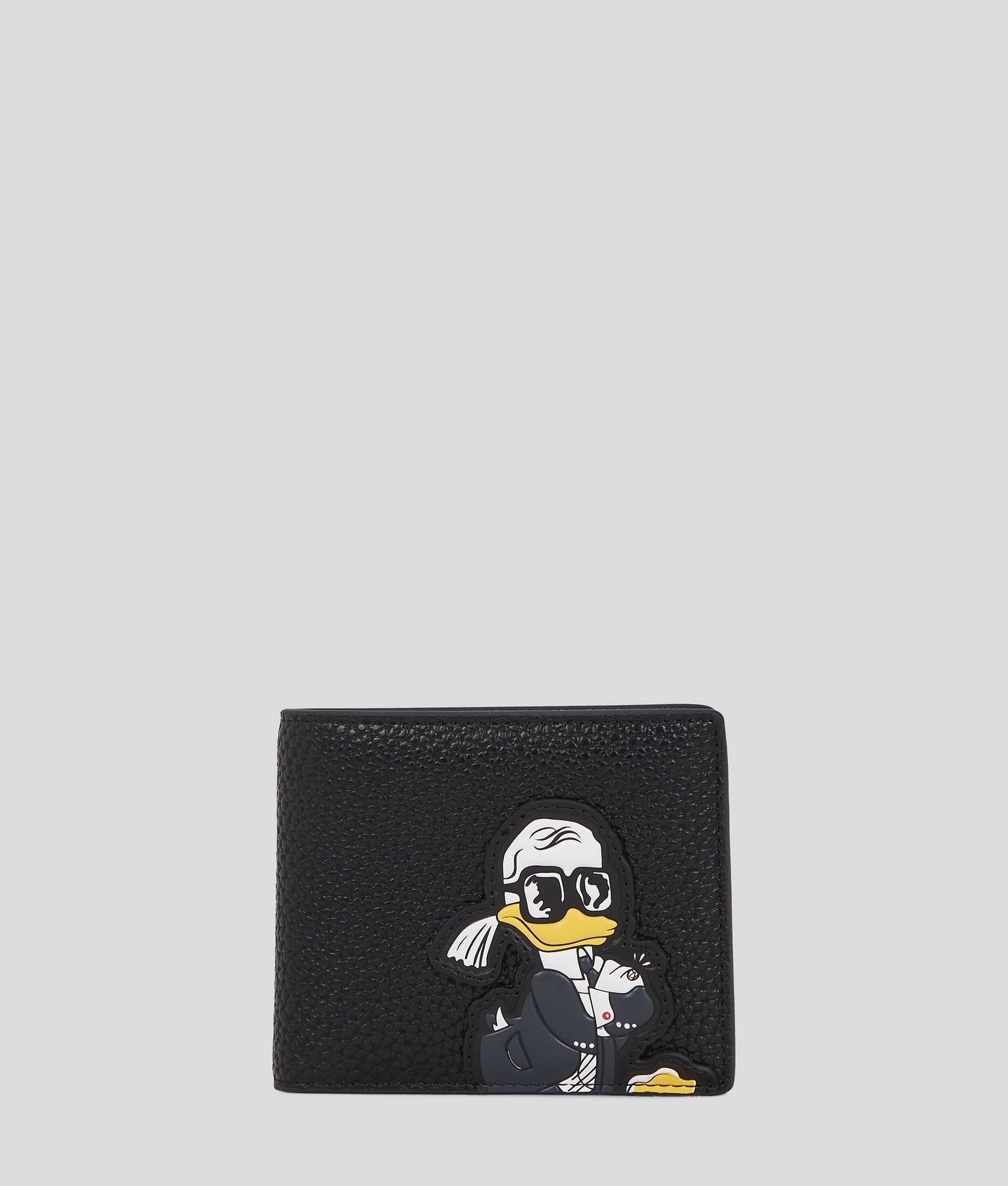 A unique accessory from the Disney x KARL LAGERFELD collection, this wallet showcases a playful reinterpretation of one of the designer's favorite characters in his unforgettable image. The bifold design includes a coin purse and multiple card slots, beautifully presented in a classic gift box.