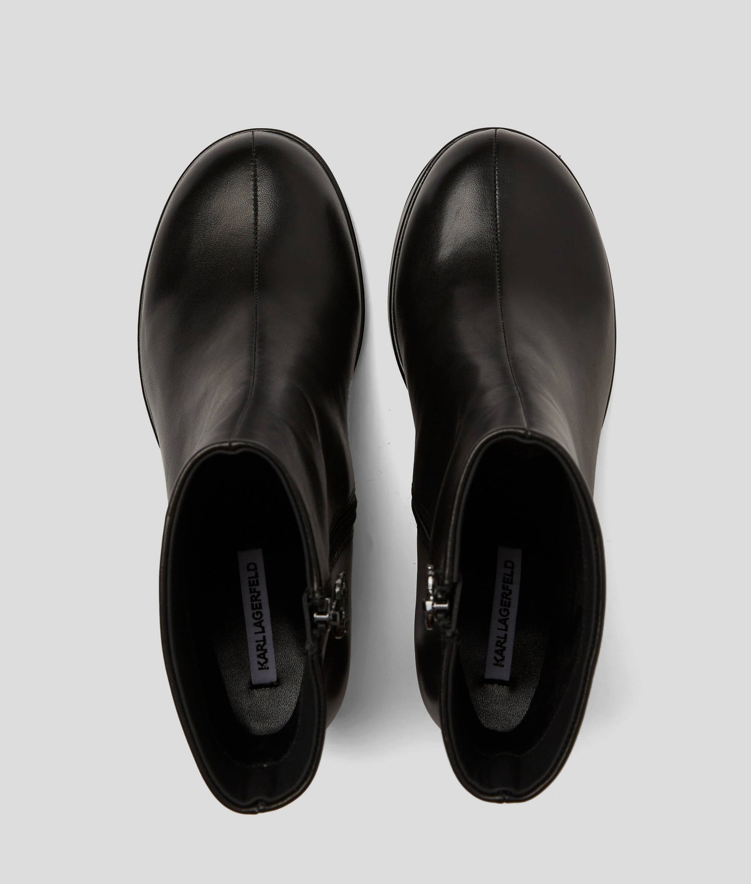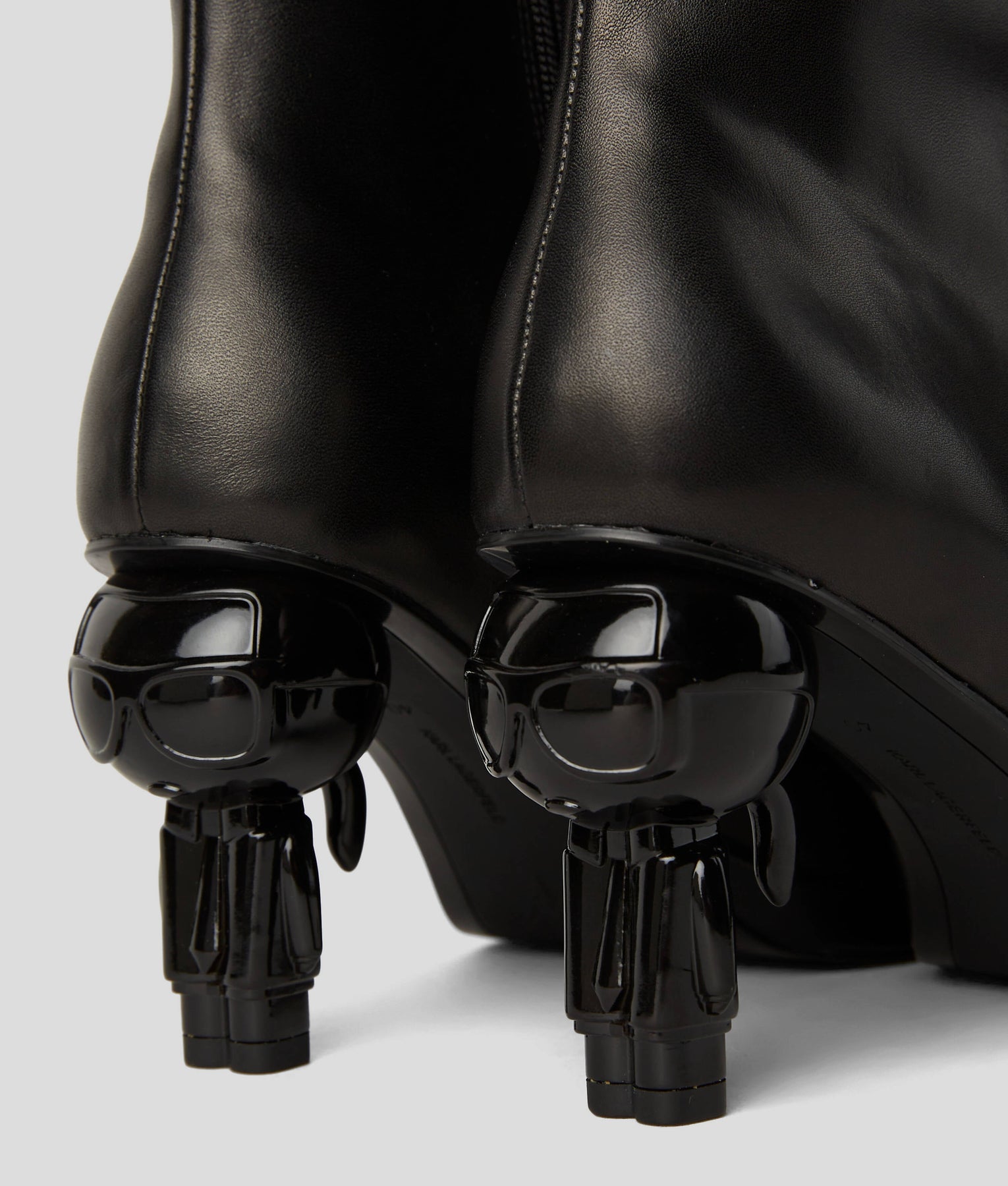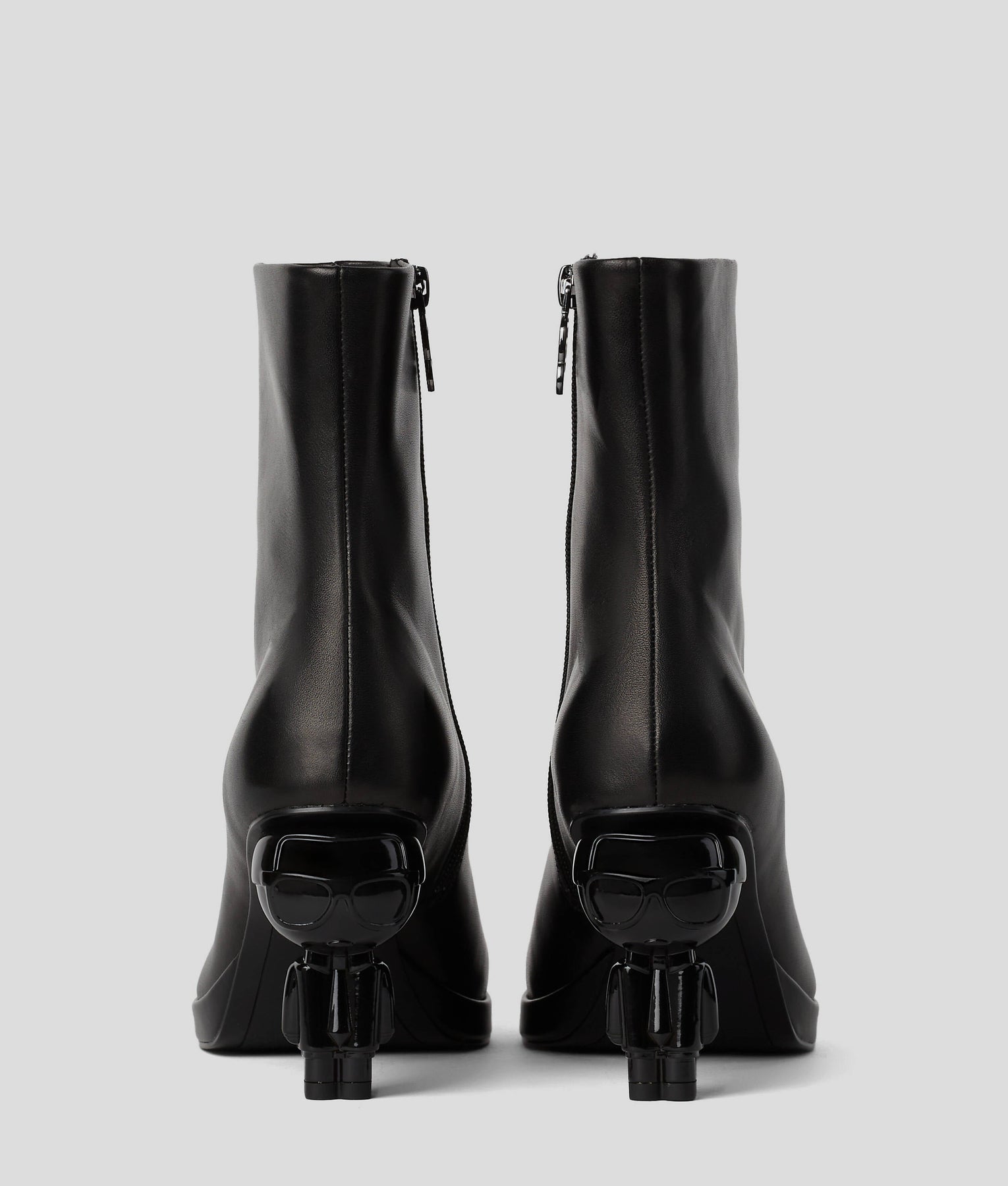 Featuring a playful, 3D IKON Karl-molded heel, these ankle boots epitomize KARL LAGERFELD statement style.