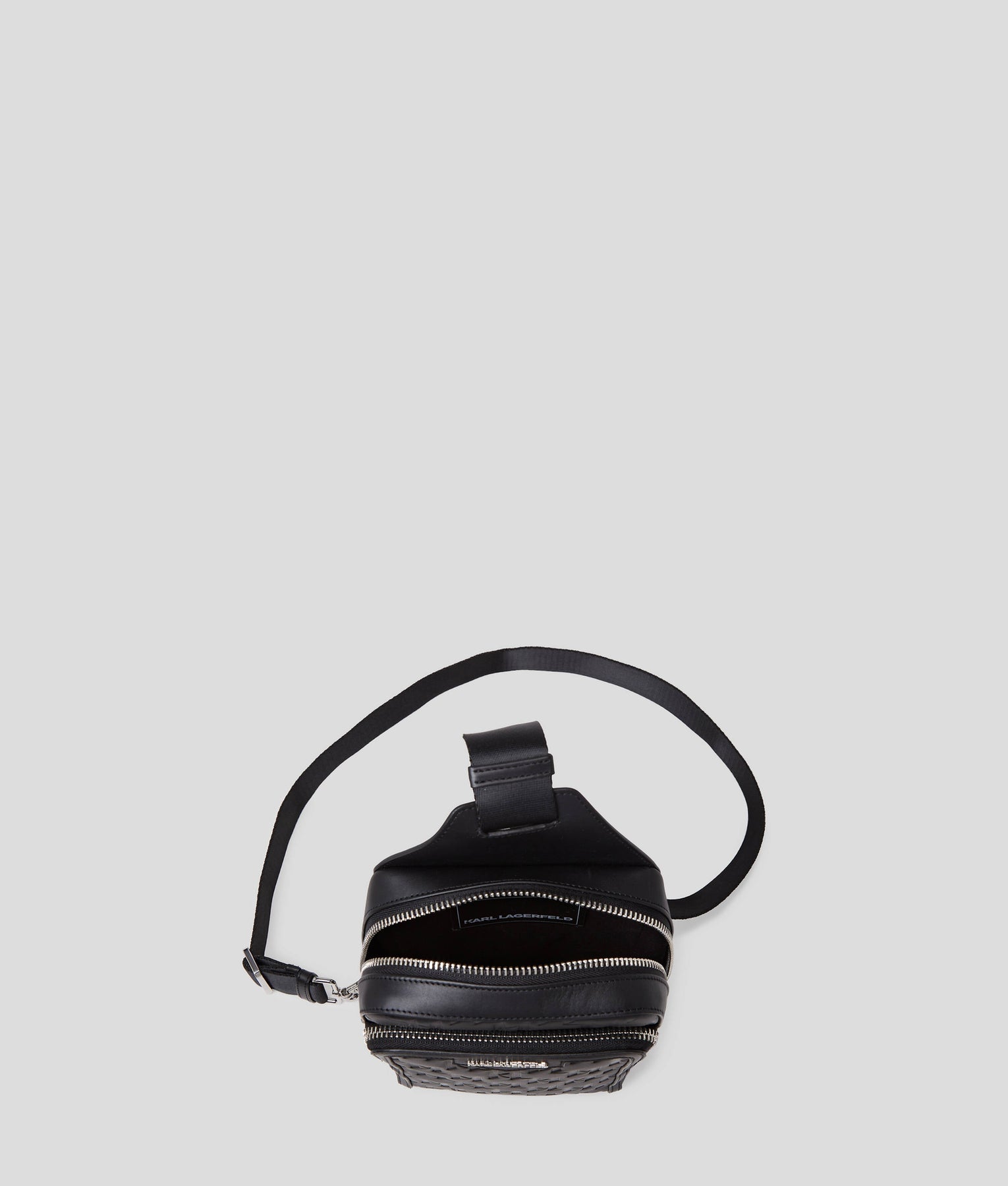 Modern practicality meets chic sophistication in the K/Loom sling bag. Made from luxurious leather, the contemporary silhouette features an all-over debossed KARL Monogram design at the front, polished metal hardware and an edgy webbing strap.