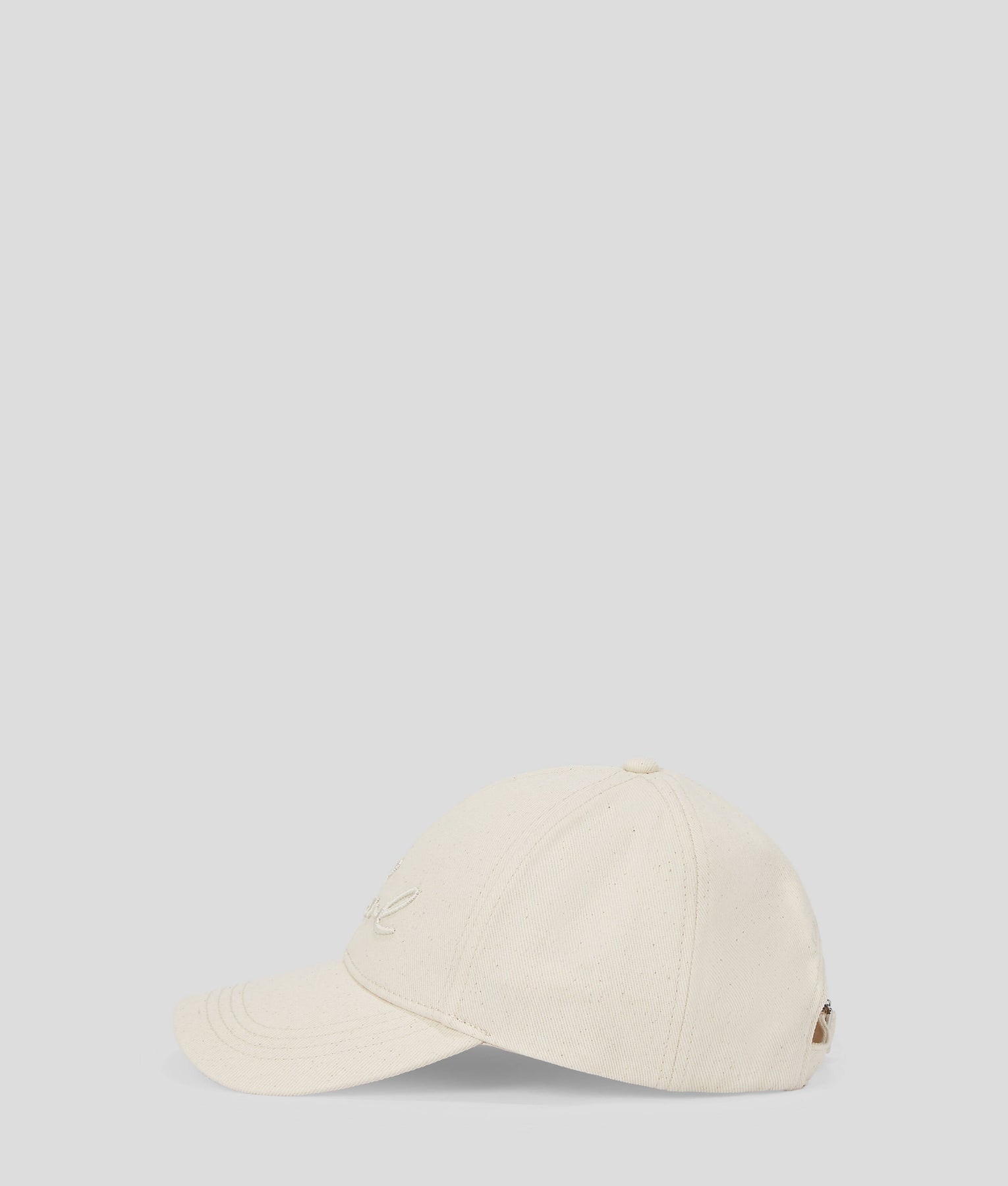 Combining practicality with style, this classic cap features a traditional six-panel design and a curved peak. The embroidered KARL Signature logo adds a distinctive flair, perfect for elevating everyday wear.