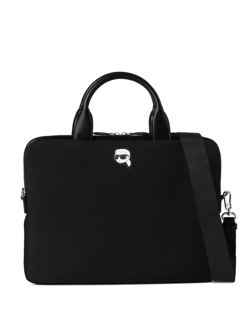 Taking its name from the signature K/Ikonik logo that appears at the front, this Karl Lagerfeld laptop bag is emblematic of the brand’s sleek aesthetic. It's fitted with two top handles and a shoulder strap.