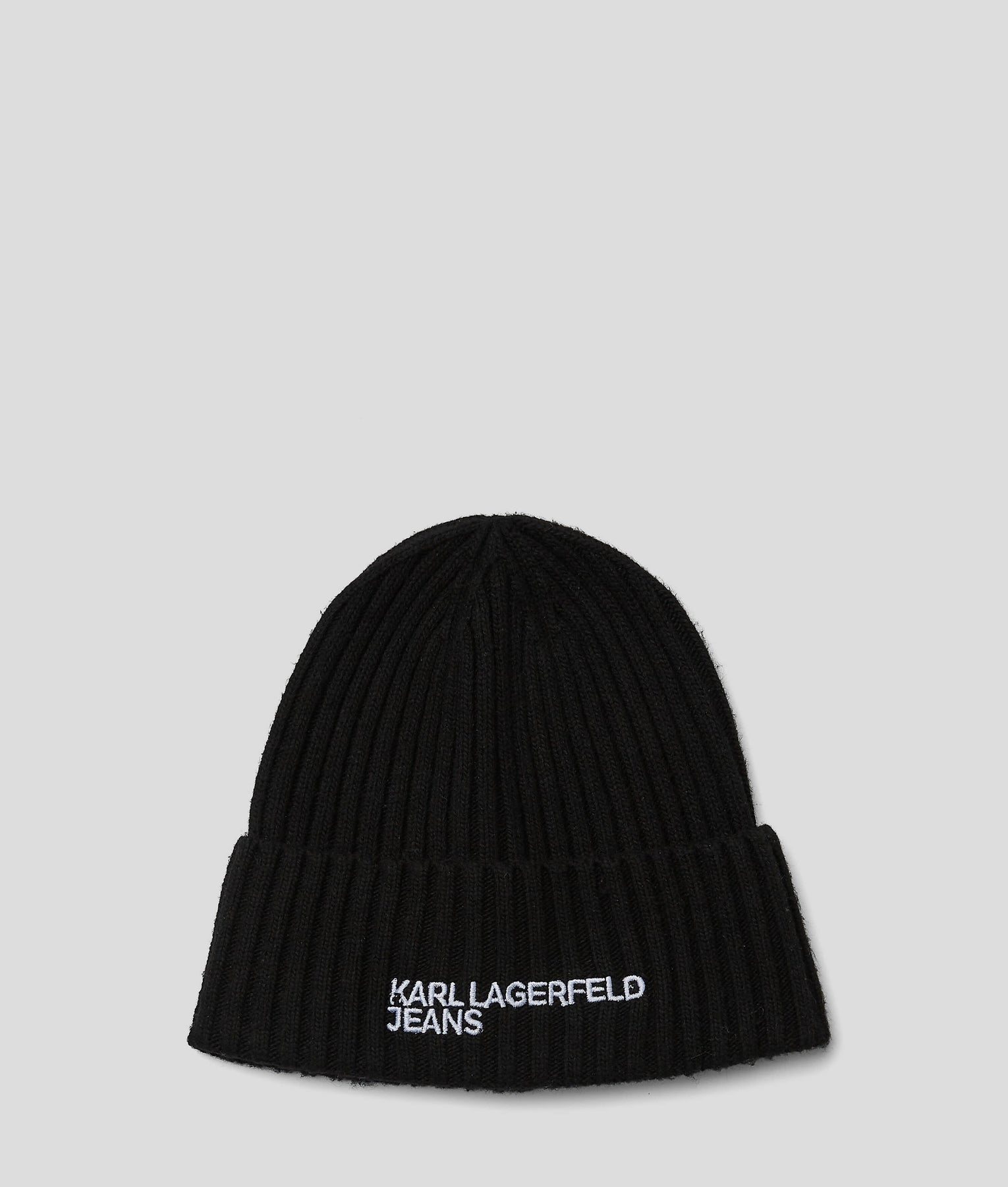 Stay stylish and cozy with this rib-knit beanie from KARL LAGERFELD JEANS. Adorned with standout embroidery, it's the perfect accessory to elevate your outfit. Complete your look with the matching scarf.