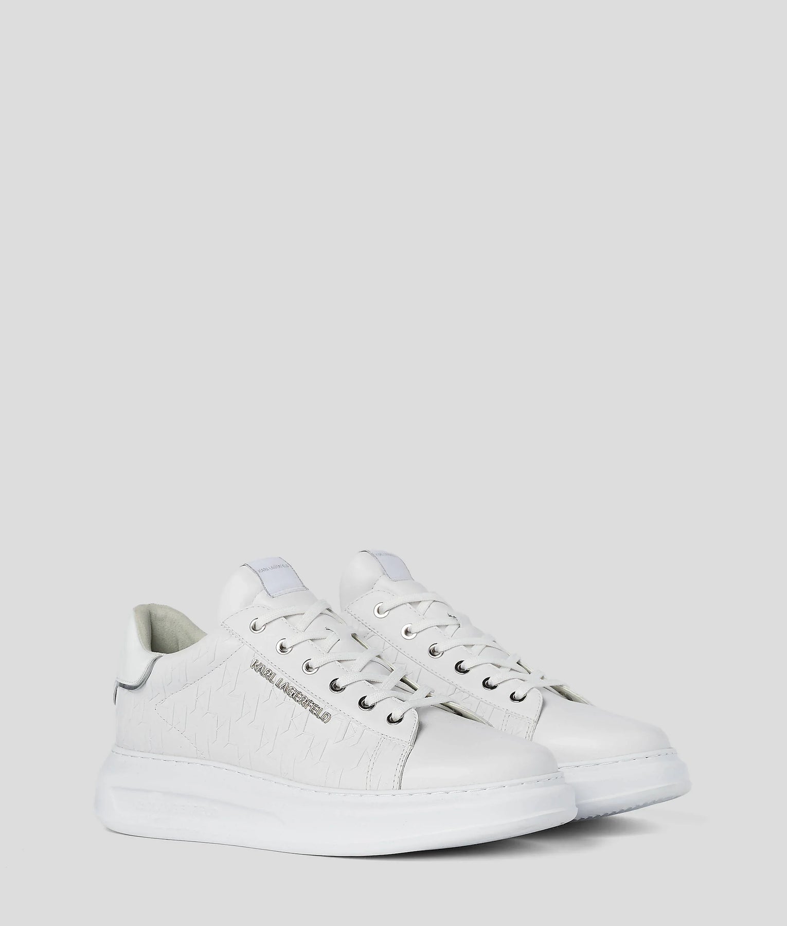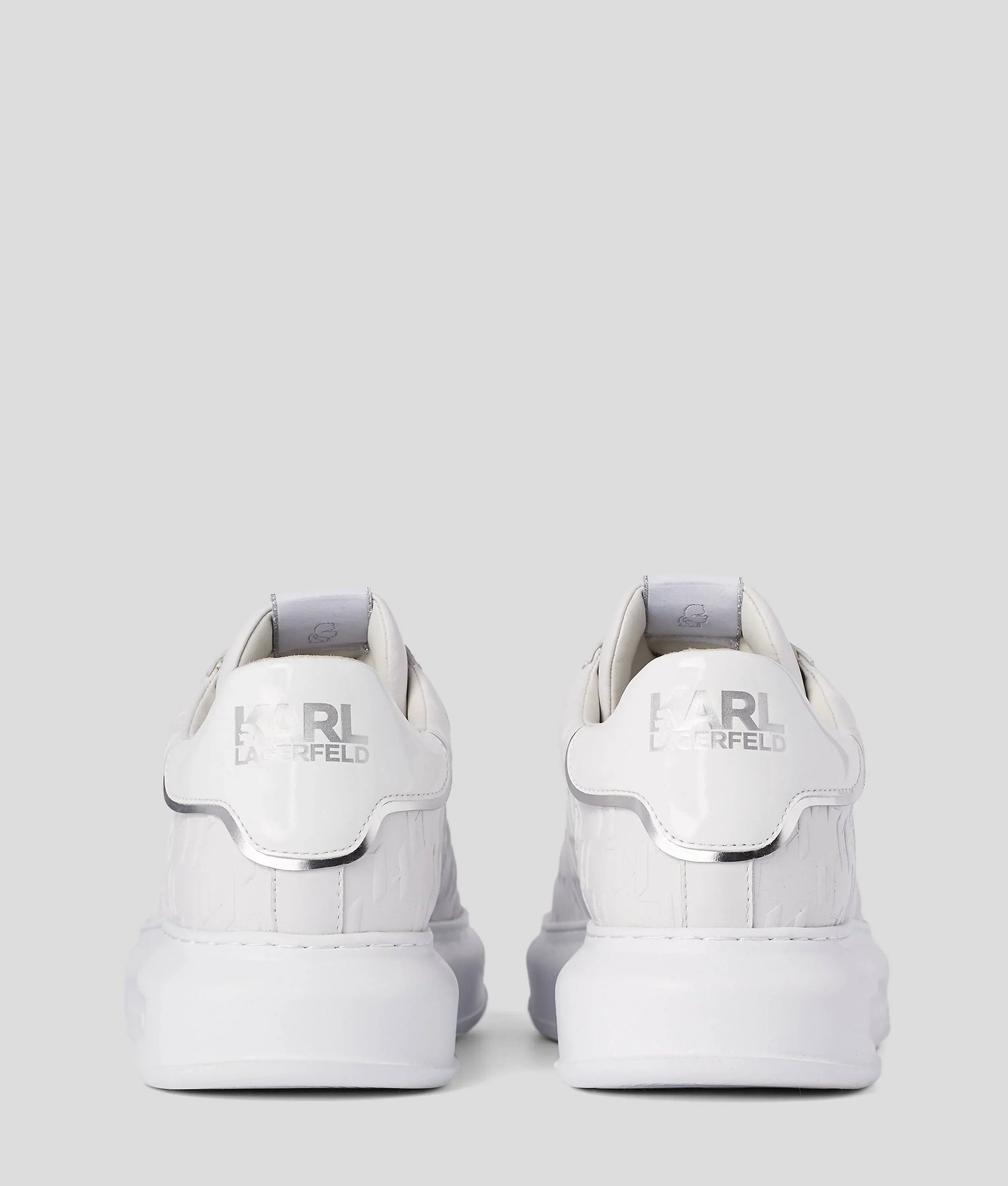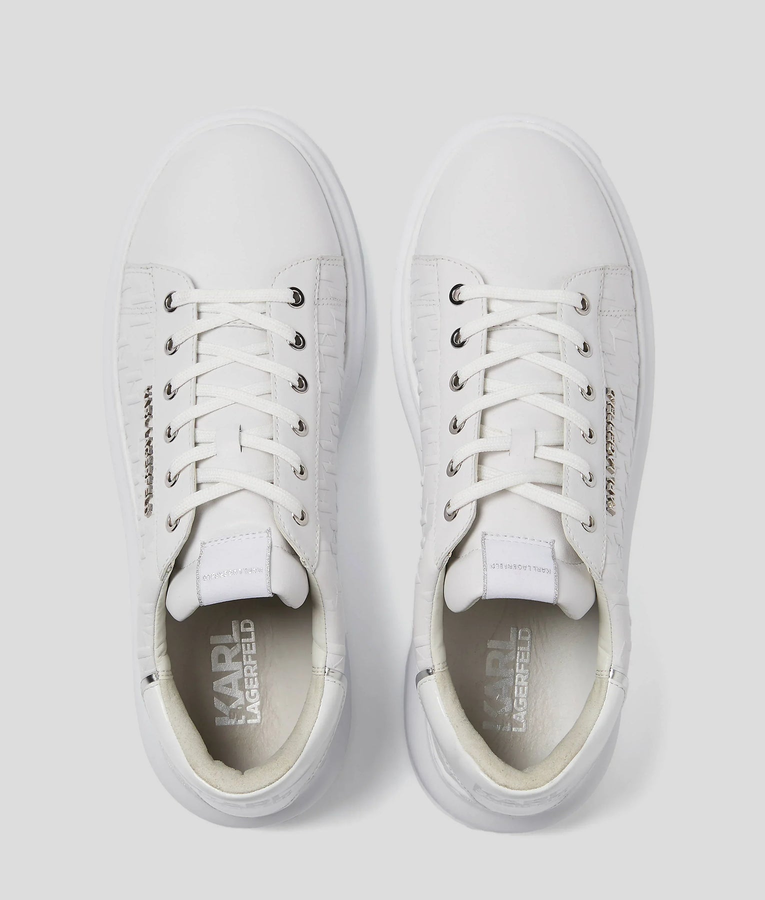 The Kapri silhouette returns, elevating a classic leather sneaker into a statement piece with metallic logo lettering below the lace-up.