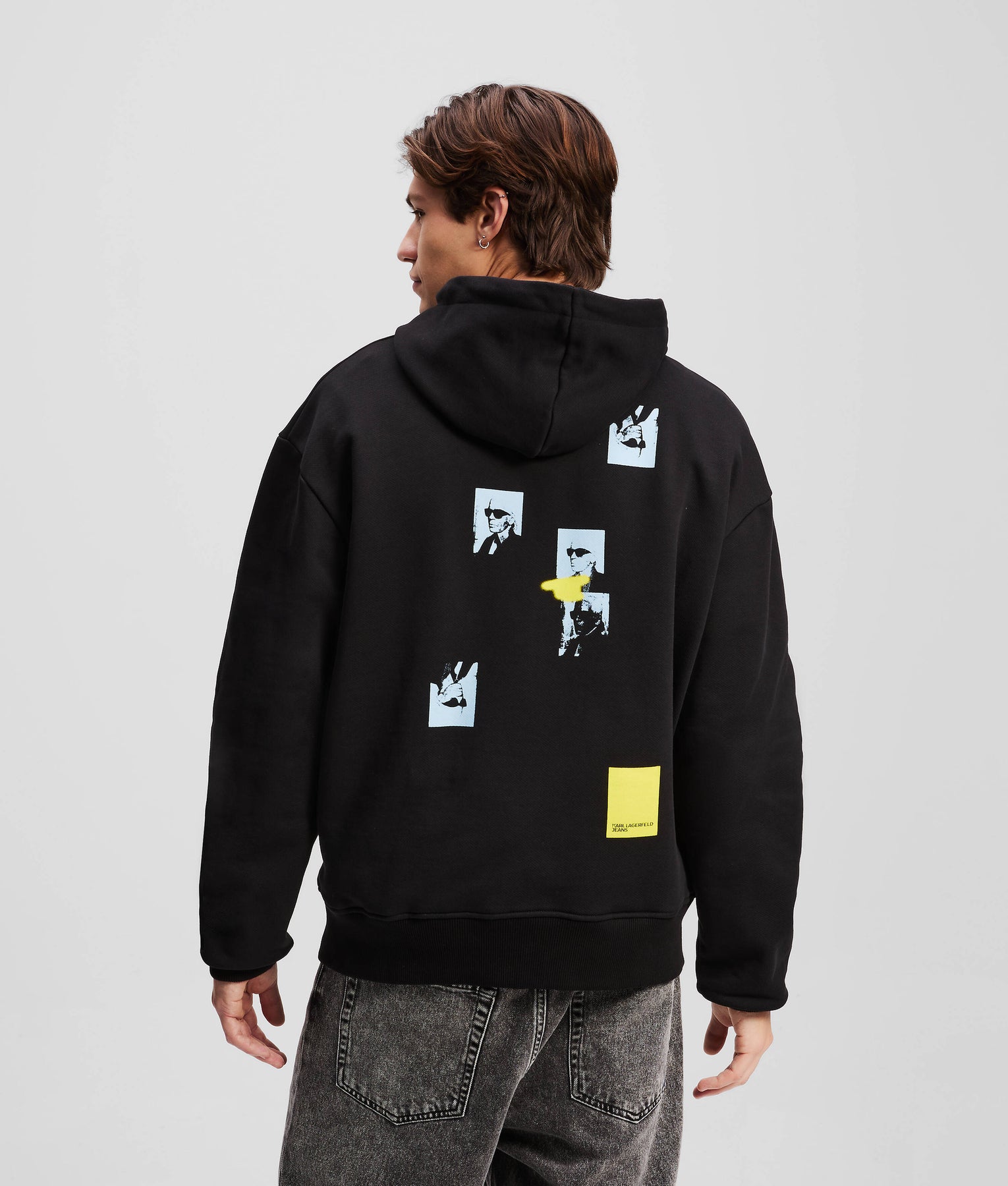 A fresh take on casual wear, this striking relaxed-fit hoodie features bold artwork playing homage to the iconic Karl Lagerfeld. Adjustable drawcords at the hood and ribbing detailing at the cuffs and hem enhance the fit, while the kangaroo pocket adds functionality.