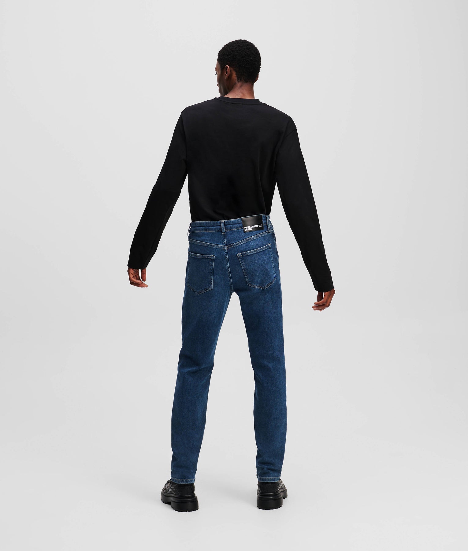 Featuring a streamlined fit with in-built stretch, these slim jeans are a versatile wardrobe must-have. The branded button closure and statement KARL LAGERFELD JEANS leather patch adds signature style to any outfit, whether pairing with a casual sweater or a smart shirt.