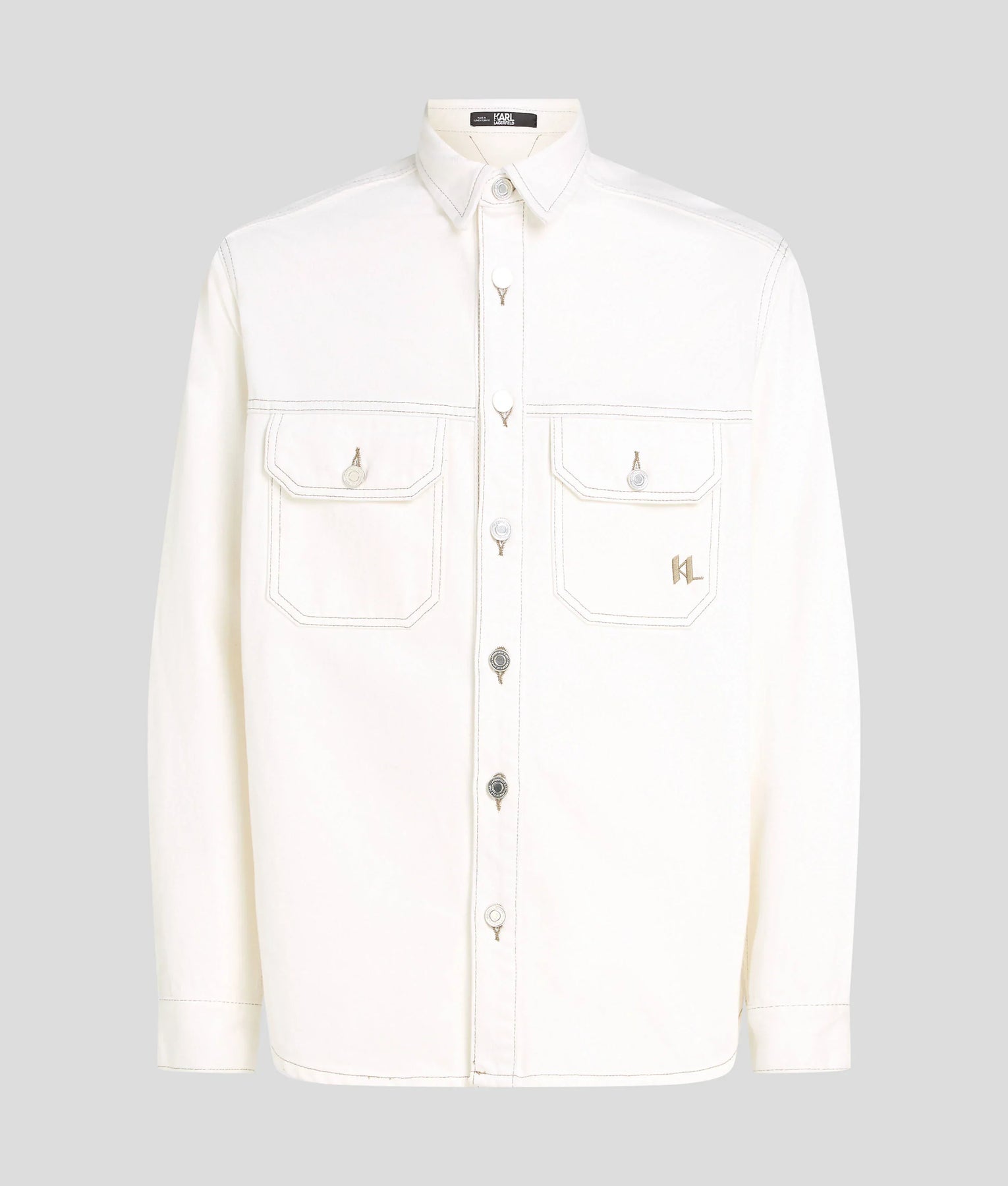 Elevate everyday style with this shirt featuring distinct contrast stitching and branded shank buttons. Twin chest patch pockets add functionality, while KARL Monogram embroidery brings a touch of sophistication. A versatile piece for effortless layering.