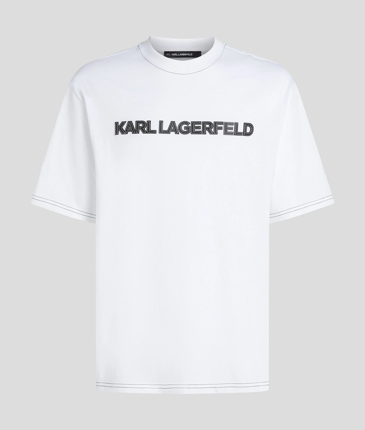 Featuring contrast stitching, this crew neck T-shirt redefines casual style. Bold KARL LAGERFELD logo artwork across the chest completes your statement look.