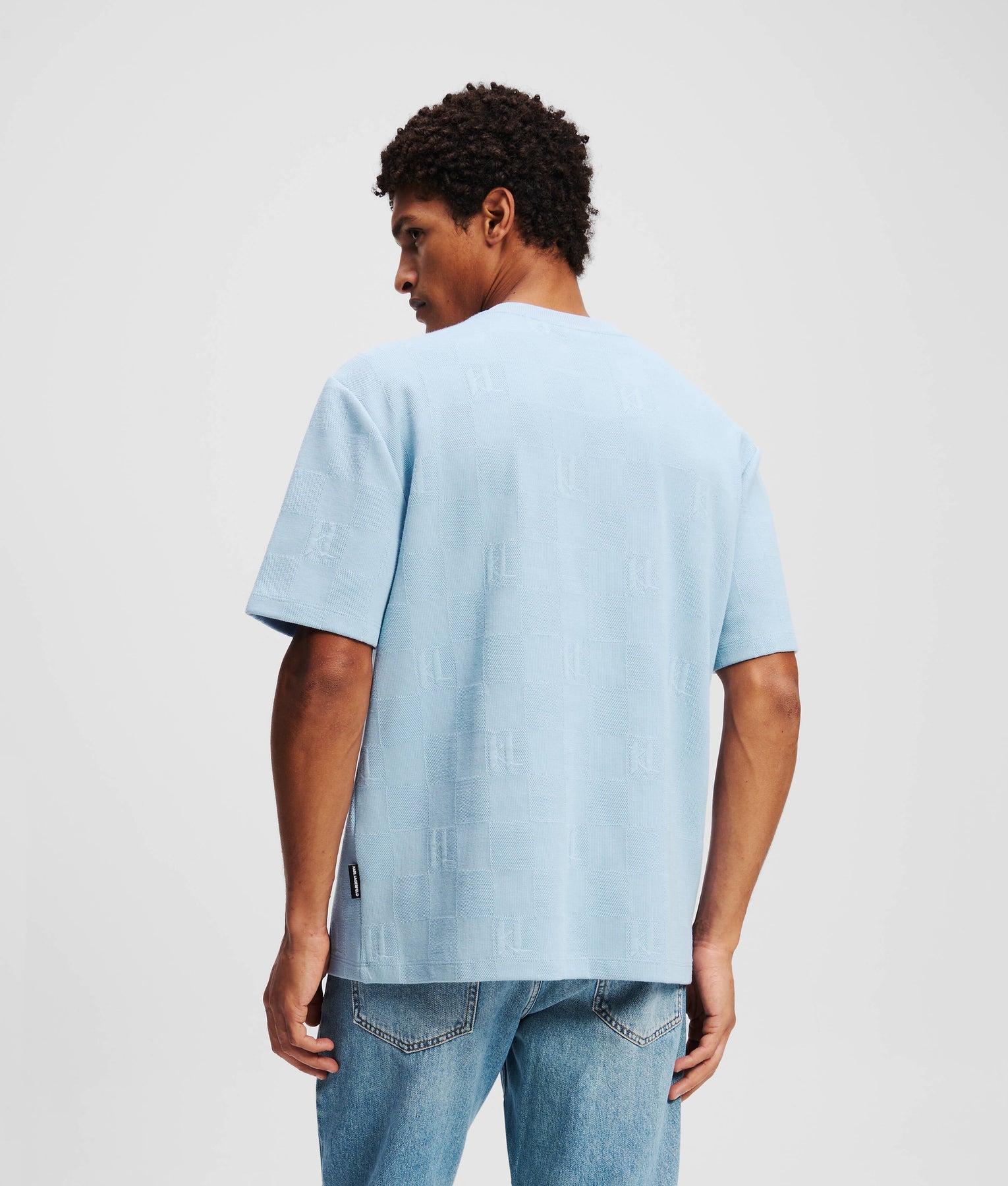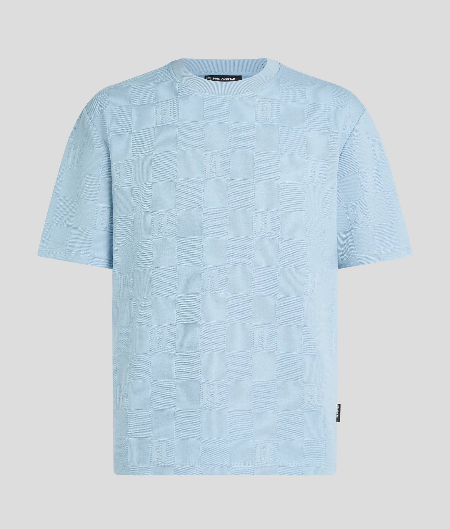 A tonal, checked jacquard pattern showcasing the iconic KARL Monogram defines this relaxed fit T-shirt, perfect for casual-cool styling. The classic crew neck features subtle ribbing, while a branded woven label adds a further touch of distinction.