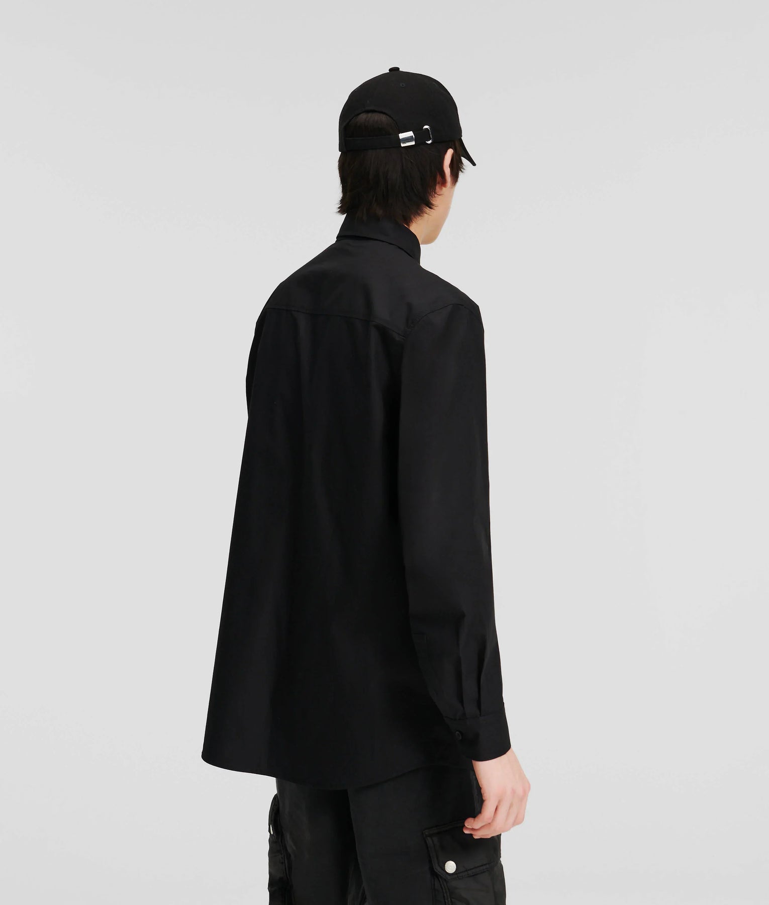 Embrace effortless style with a regular-fit shirt that boasts a sharp pointed collar and tailored buttoned cuffs. Underneath the left chest pocket, a subtle KARL LAGERFELD JEANS logo adds a touch of exclusive identity.