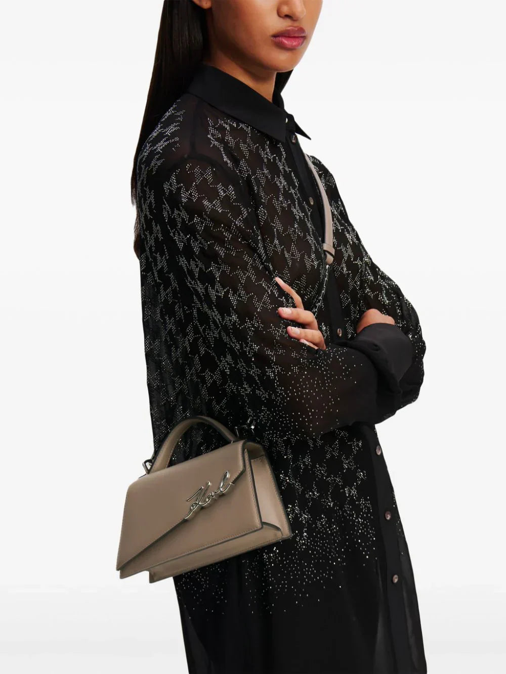 • leather and chain-link shoulder strap