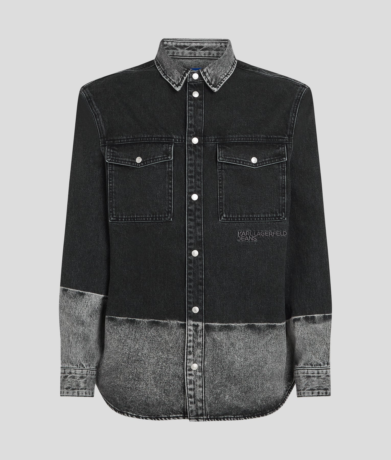 Express your individual style with this statement ombre washed denim overshirt, perfect for easy layering on cooler days. Its edgy design is defined by a contrasting wash at the collar, cuffs and hem, while KARL LAGERFELD JEANS embroidery adds a signature touch. Distinctive snap buttons at the fastening and utility-inspired chest pockets complete the confident piece.